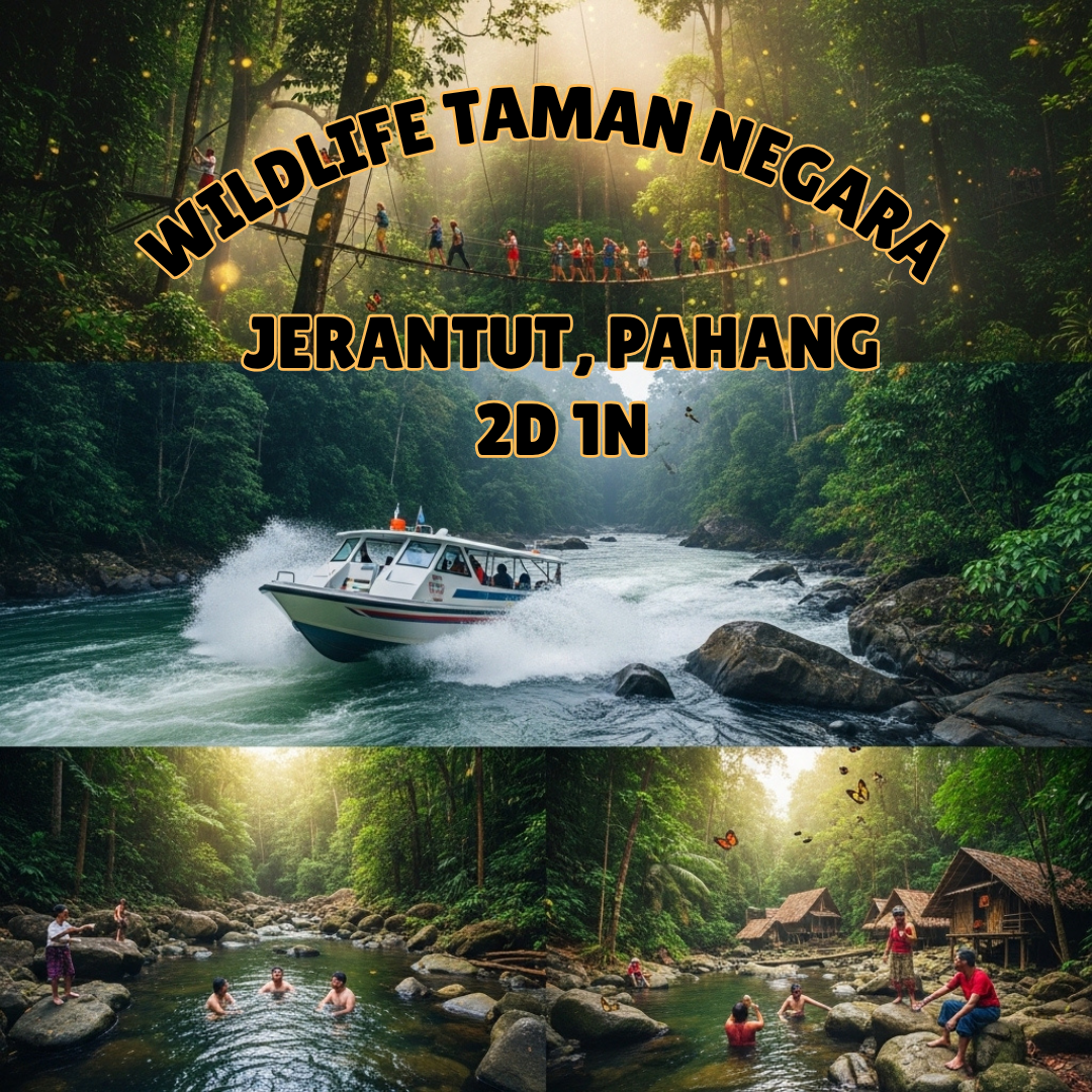 This 2D1N wildlife and nature experience at Taman Negara Pahang offers participants a unique opportunity to explore one of the world’s oldest tropical rainforests. The program is designed to promote environmental awareness, appreciation of biodiversity, and outdoor experiential learning. Participants will engage in guided jungle trekking, where they can observe diverse flora and fauna while learning about the ecosystem, rainforest survival skills, and conservation efforts. Activities such as canopy walk, river exploration, and night jungle walk provide an exciting hands-on experience and a deeper understanding of wildlife behaviour in their natural habitat. This program also encourages teamwork, physical endurance, and mental resilience through outdoor challenges and group activities. It is suitable for students, nature lovers, and adventure seekers who wish to reconnect with nature while gaining valuable knowledge about Malaysia’s natural heritage.