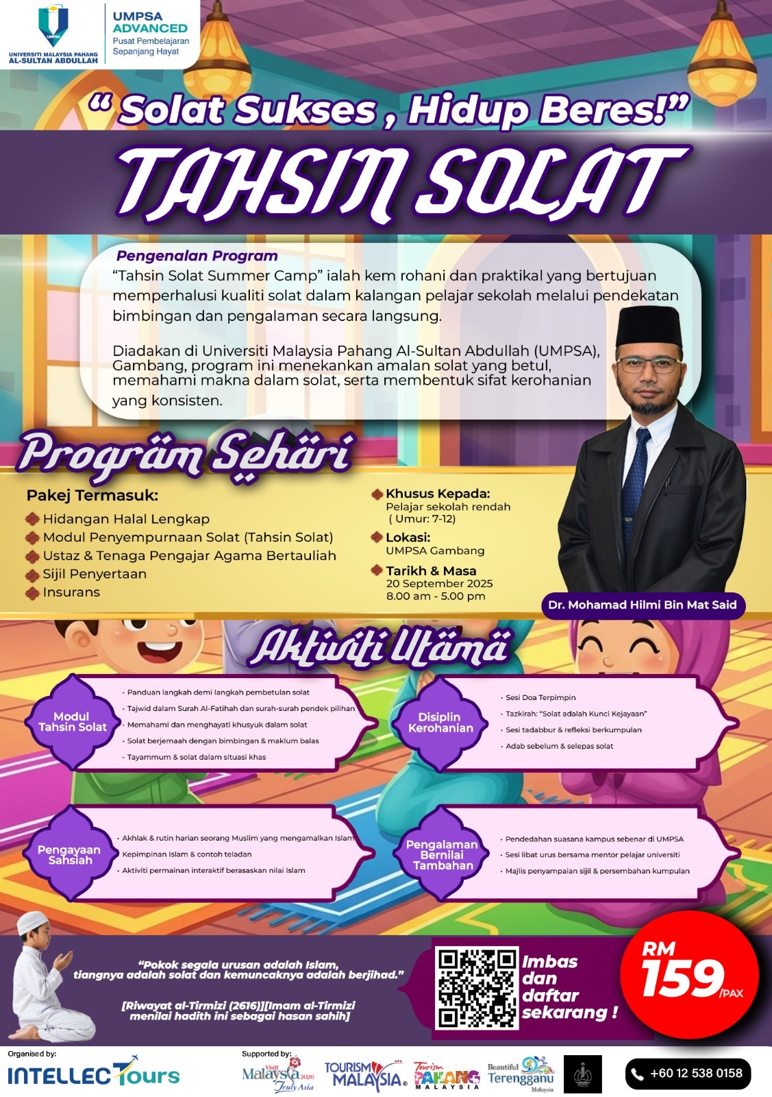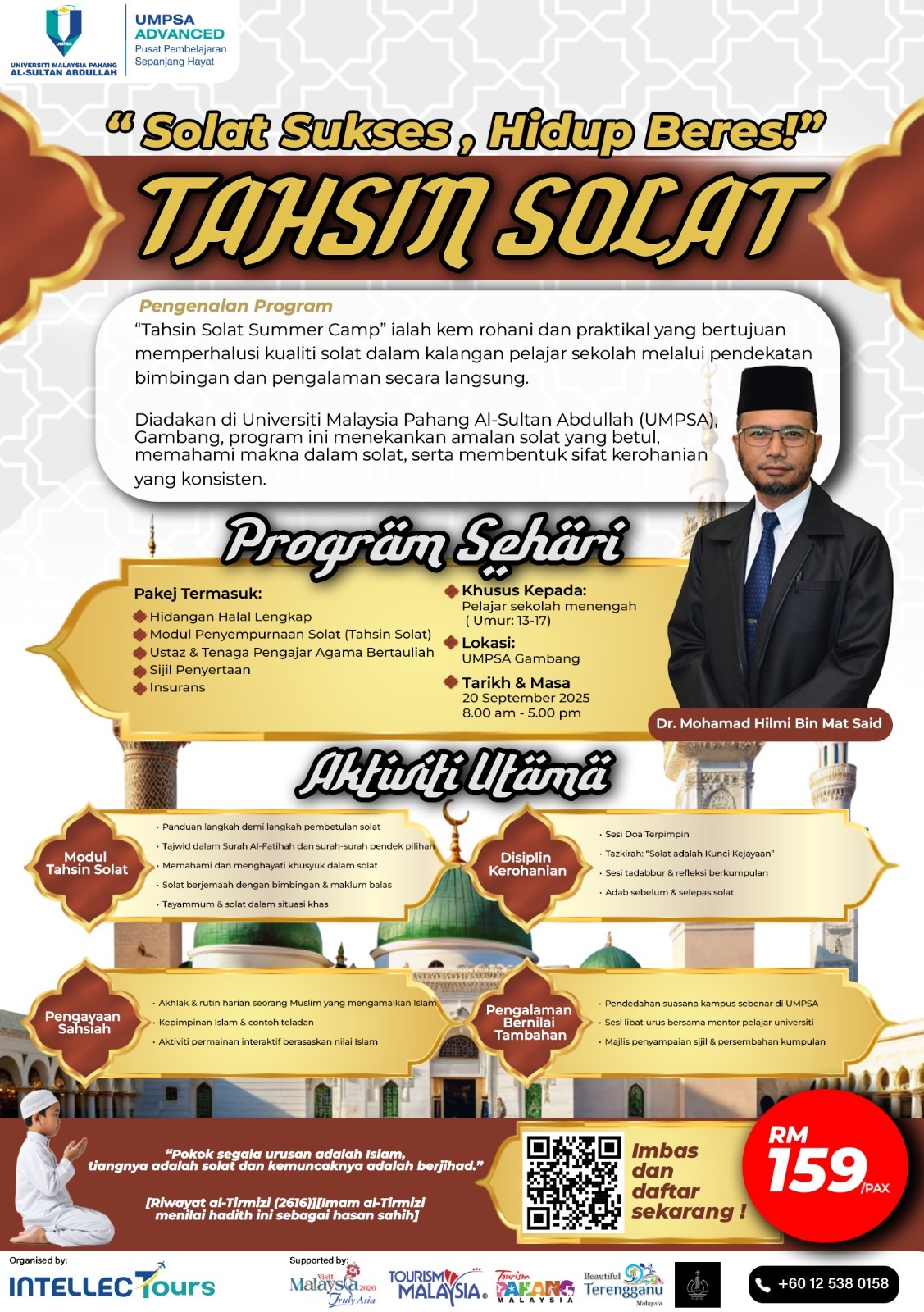 The Tahsin Solat program for secondary school students aims to enhance the quality and understanding of prayer (solat) among teenagers. At this stage, students already know the basics of solat, so the focus is on refinement (tahsin) — improving accuracy, khusyuk (focus), tajwid in recitation, and understanding of meanings behind every action and doa. This program helps students strengthen their spiritual discipline and develop a deeper connection with Allah SWT through proper solat practices. It also promotes good character, time management, and self-reflection — values that support both academic and personal growth.